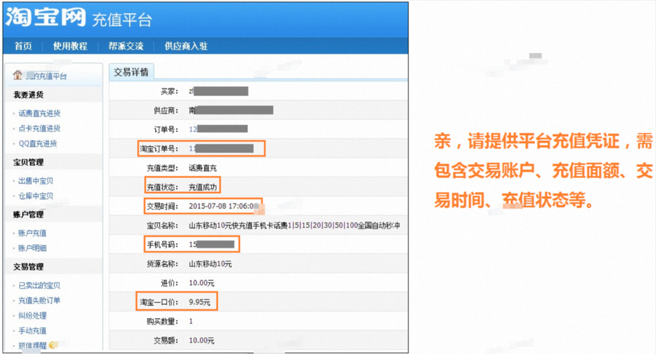 淘宝平台充值凭证