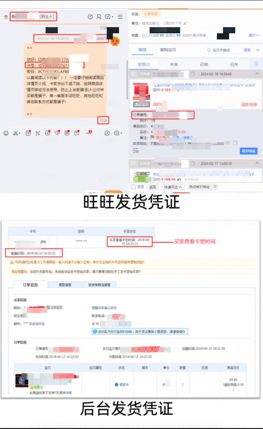 2. 卡密信息(卡号)与发货信息中的一致;