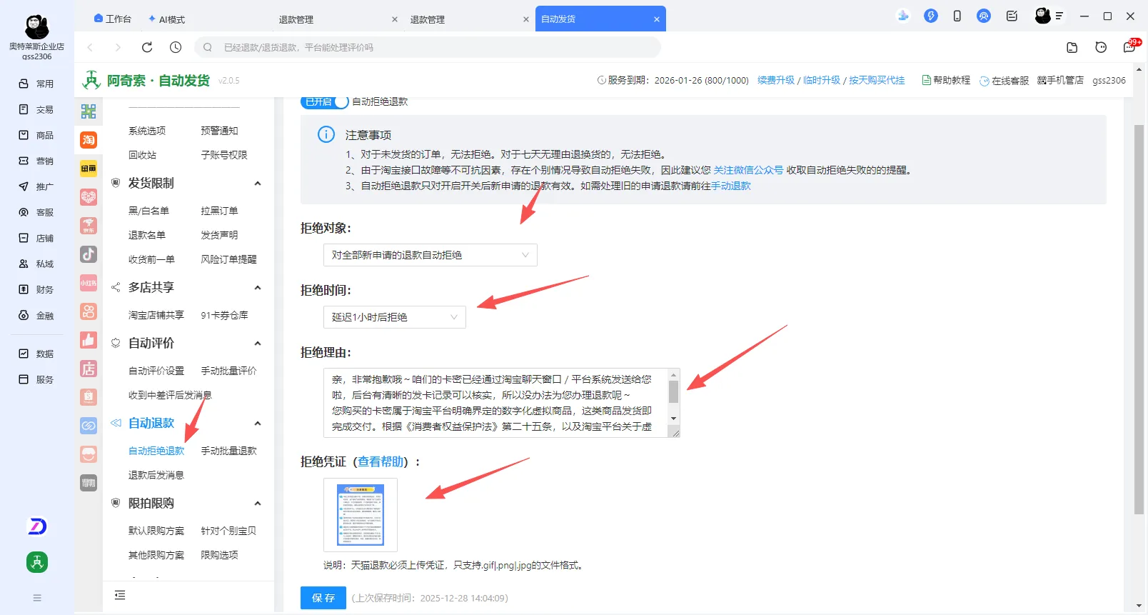 • 可以根据实际情况处理,比如卡密未发出给买家,订单状态为已发货,此时需要退款给买家,避免被投诉,一般没有发出多为阿奇索Agiso旺旺发货助手掉线,状态未打勾