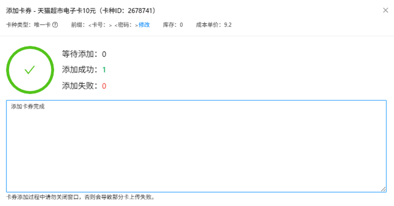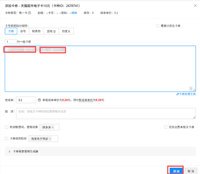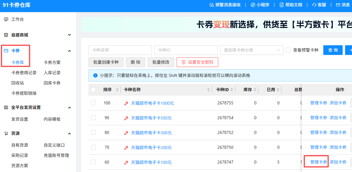 卡券>卡券库>卡种名称>管理卡券>添加