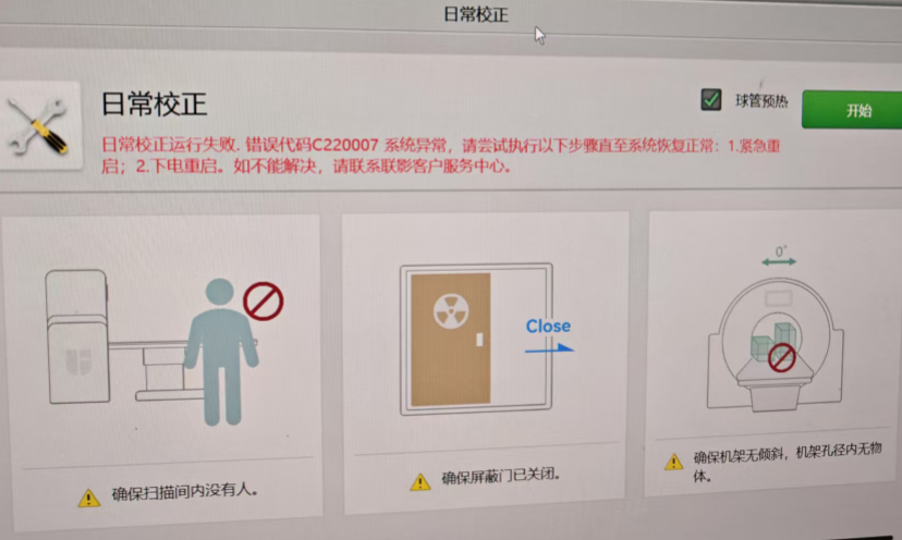 uCT 960+ 报故障代码C020009:0A C020002:0A C020001:0A 日常校准报C220007