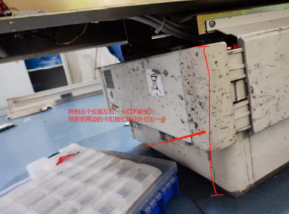 先把床降到最低位置往上升一点,然后用一字螺丝刀撬开卡扣的卡住点,往外