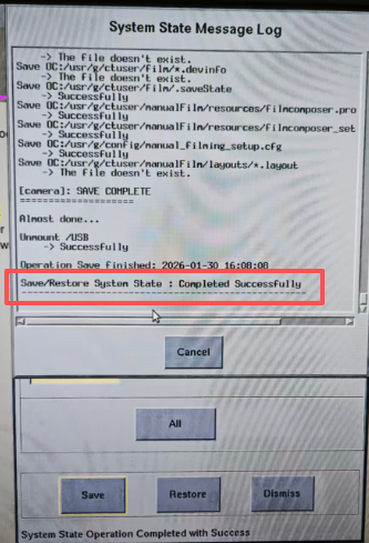 等待出现提示 Save/Restore System State : Completed Successfully 备份完成