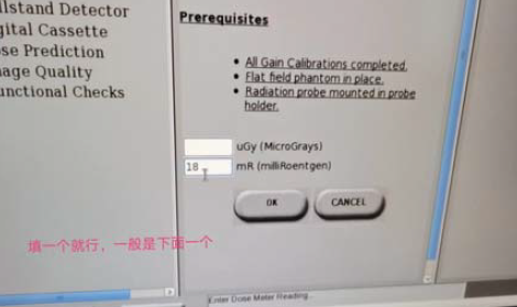 8. 曝光前需要填曝光的参数进行填写,卧位一般填写 18MR,两个参数只要填一个就可以