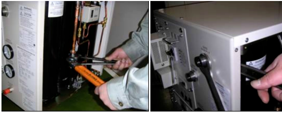 - 关闭氦压缩机电源开关和冷头电源开关及主电源开关。