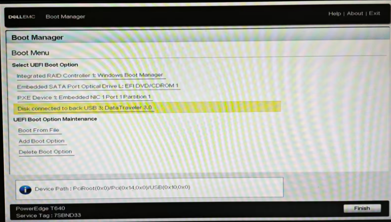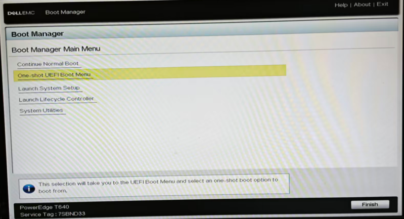 Boot Manager>Boot Manager Main Menu>One-shot UEFI Boot Menu