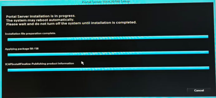 等待系统安装[100%]Applying progress