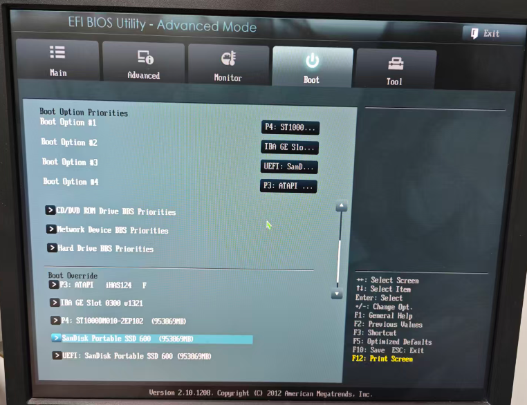 点击Boot>Boot Ouerride>USB硬盘>回车