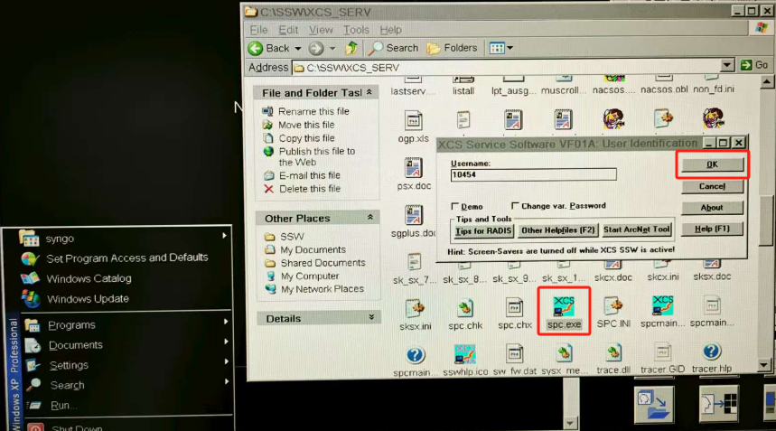 打开C:\SSW\XCS_SERV\spc.exe查看系统日志,点击ok